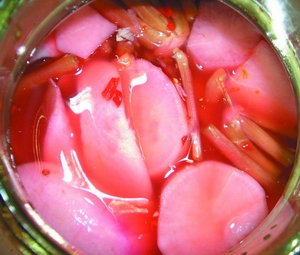 介紹: 團(tuán)年菜又稱“合菜”,為土家族過年家家必制的民族菜。將蘿卜、豆腐、白菜、火蔥、豬肉、紅辣椒條等合成一鼎鍋熬煮,即成“合菜”。除味道佳美,還別有深意。它象征五谷豐登,合家團(tuán)聚,又反映土家人不忘先民的光榮傳統(tǒng)。