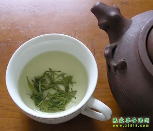 武陵源風(fēng)景區(qū)盛產(chǎn)香茶,著名的有“青巖茗翠”、“龍蝦花茶”、“黃石寨云霧茶”、“天崇毛尖”與“索溪毛尖”等。通過1982年評比,“青巖茗翠”獲部級金杯獎,同年又獲全國首屆食品博覽會銀獎。“龍蝦花茶”也已列入全國名茶。人們經(jīng)過品嘗、評比,并經(jīng)茶葉專家鑒定,一致認為“青巖茗翠”、“龍蝦花茶”等具有外形美觀,內(nèi)質(zhì)優(yōu)良等特點。這種茶葉,從外形來看,條索緊結(jié),圓渾彎曲,苗鋒顯露,銀毫滿披,色澤翠綠,從內(nèi)質(zhì)來看,清香馥郁,味醇回甘,湯色綠明,葉底均勻,飲后爽神,具有熟板栗蘭花之奇香,飲后回味無窮。據(jù)考證,“青巖茗翠”屬高山云霧茶一類。自古道:“高山出好水,云霧育佳茶”。黃石寨枇杷界海拔1000多米,氣候溫和,云霧繚繞,溫度適宜,因而,茶葉嫩度高,品質(zhì)好。這種獨特的環(huán)境為茶葉中的氨基酸,咖啡堿等有效成分的形成和增長,提供了優(yōu)越的生長條件,而對質(zhì)地粗老的纖維素的形成,則又起到了抑制作用。還有,這些山峰上日照短,直射光少,漫射光多,晝夜溫差大,土質(zhì)的有機質(zhì)豐富,因而結(jié)構(gòu)疏松,排水又好。一切這些因素,都為茶葉的平穩(wěn)生長創(chuàng)造了良好的條件。所以“青巖茗翠”茶,就博得了各地名家的一致好評。湖南省茶葉學(xué)會秘書長、湖南農(nóng)學(xué)院副教授朱先明品了這種茶以后,賦詩贊美: